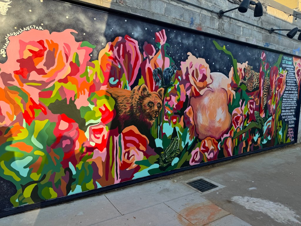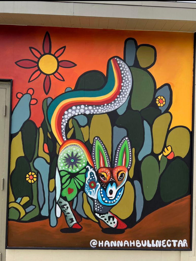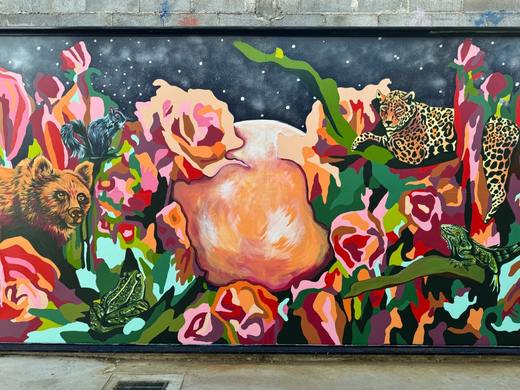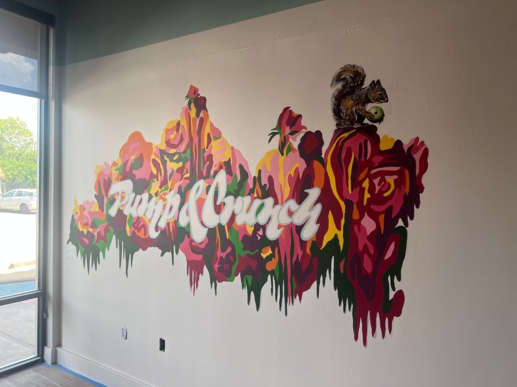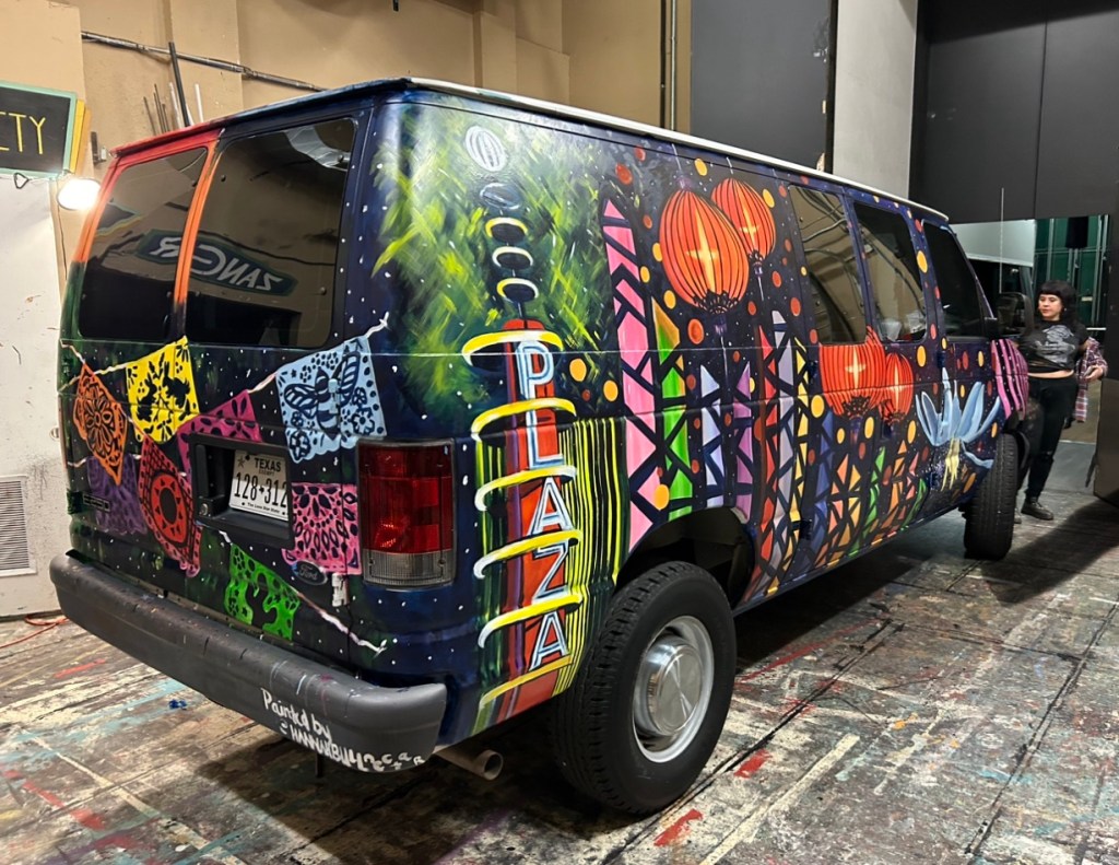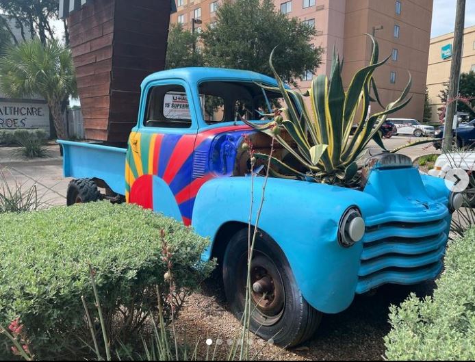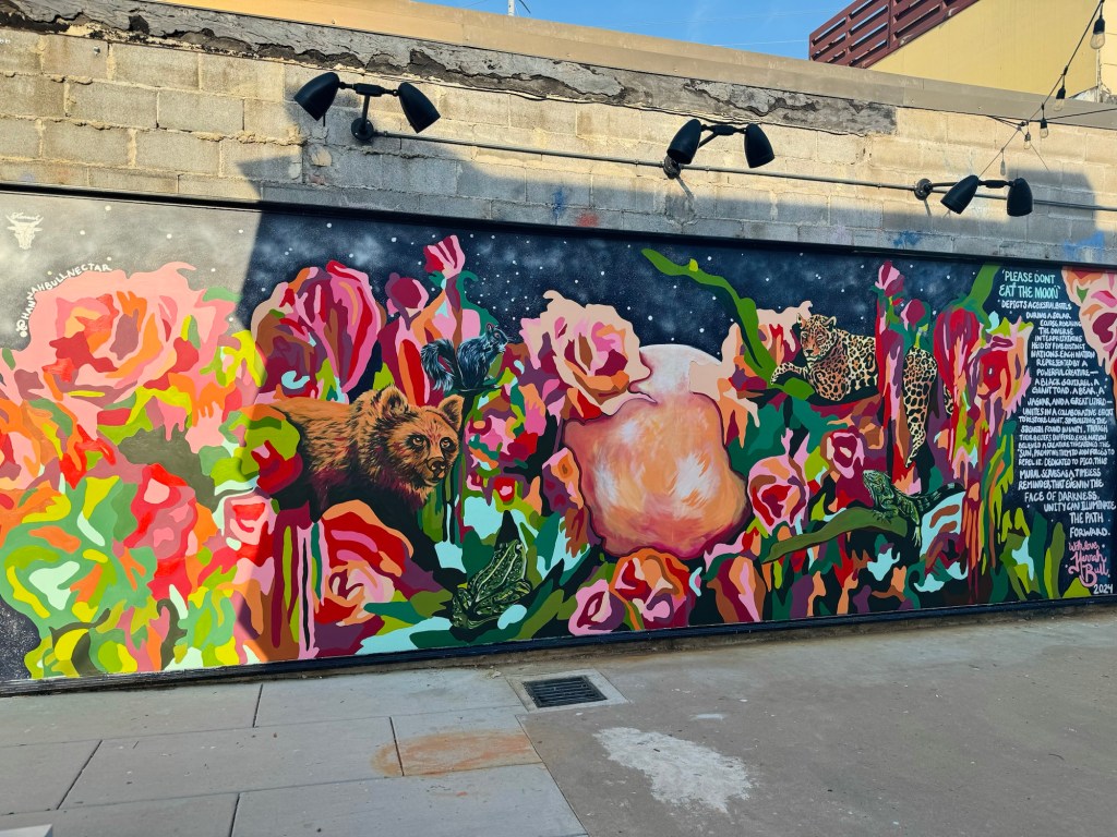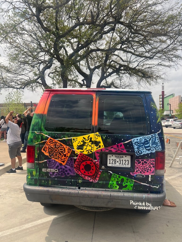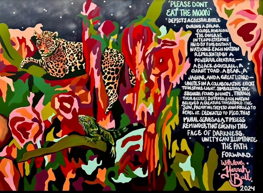 Irvington Park Project for Mayor Turner’s ‘Love Our Parks’ Initiative. Consisted of two murals, four basketball columns and a 200 foot concrete playground perimeter. 2022‘Please don’t eat the moon.’ 8 x 20 foot Mural for Garland, TX Art AlleyArt Car Van for the City of Garland Theater and Arts DistrictMusic Box Murals for East End Hou located along the Esplanade in EaDoJumpsuits painted for ‘Uncle Jumbo’ who was a Grammy nominee for ‘Best Children’s Album.’ Pump N’ Crunch Mural for local small health food catering business “Bee Sweet, Y’all’ – Earth Day murals at Discovery Green 8′ x 8′ feet, latex on wood“Bee Sweet, Y’all” – Earth Day murals at Discovery Green 8′ x 8′ feet, latex on wood“Bee Sweet, Y’all” – Earth Day murals at Discovery Green190 x 11 foot mural for Greentown Labs