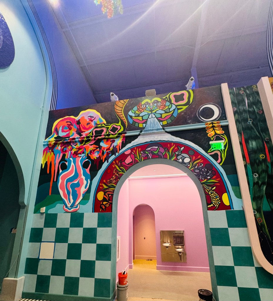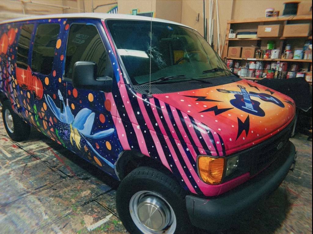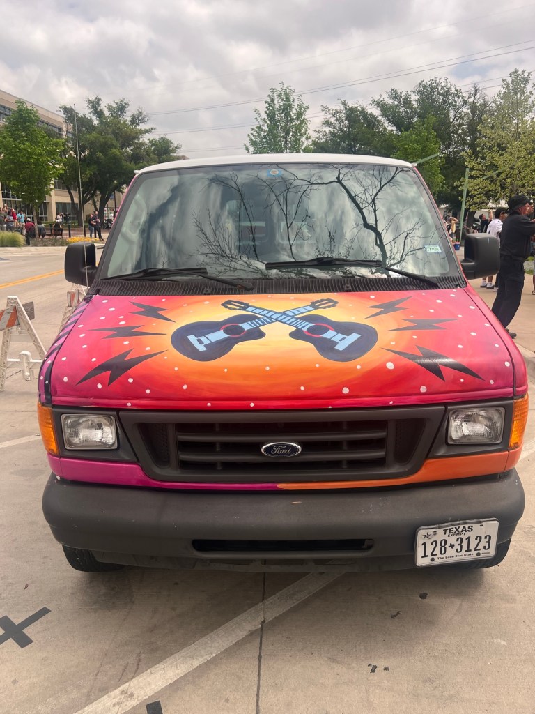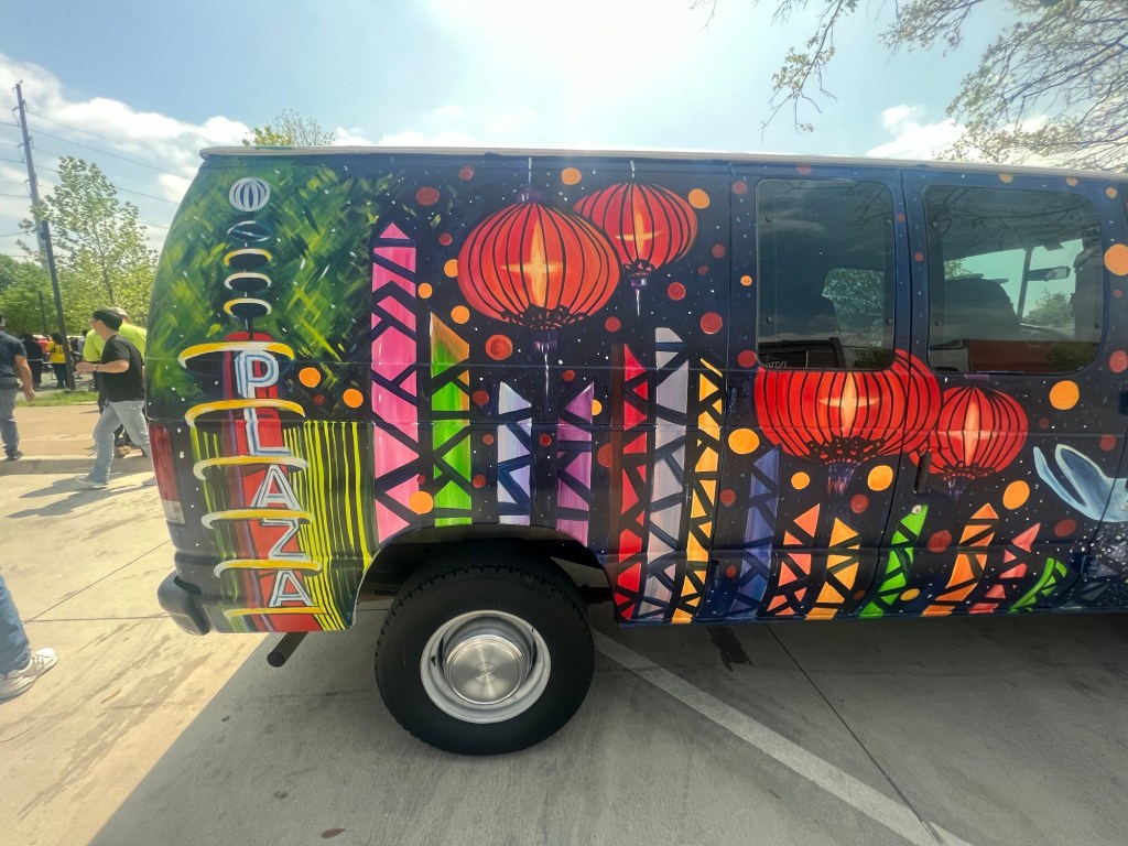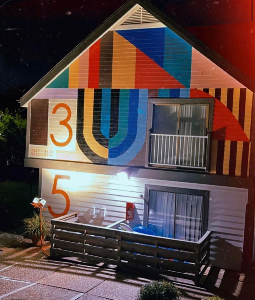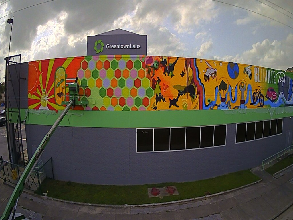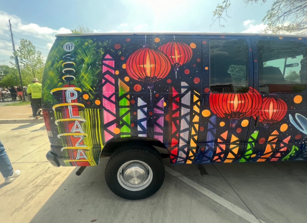 Irvington Park Project for Mayor Turner’s ‘Love Our Parks’ Initiative. Consisted of two murals, four basketball columns and a 200 foot concrete playground perimeter. 2022‘Please don’t eat the moon.’ 8 x 20 foot Mural for Garland, TX Art AlleyArt Car Van for the City of Garland Theater and Arts DistrictMusic Box Murals for East End Hou located along the Esplanade in EaDoJumpsuits painted for ‘Uncle Jumbo’ who was a Grammy nominee for ‘Best Children’s Album.’ Pump N’ Crunch Mural for local small health food catering business “Bee Sweet, Y’all’ – Earth Day murals at Discovery Green 8′ x 8′ feet, latex on wood“Bee Sweet, Y’all” – Earth Day murals at Discovery Green 8′ x 8′ feet, latex on wood“Bee Sweet, Y’all” – Earth Day murals at Discovery Green190 x 11 foot mural for Greentown Labs