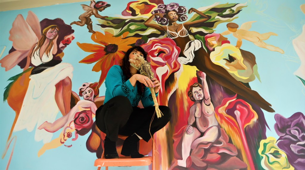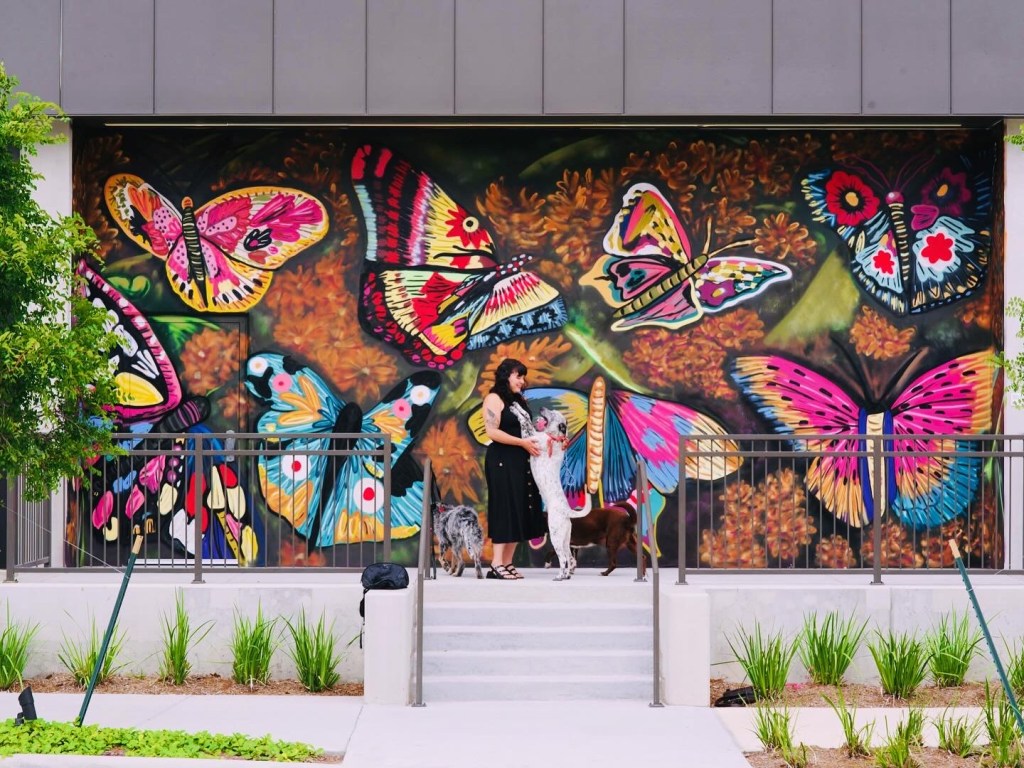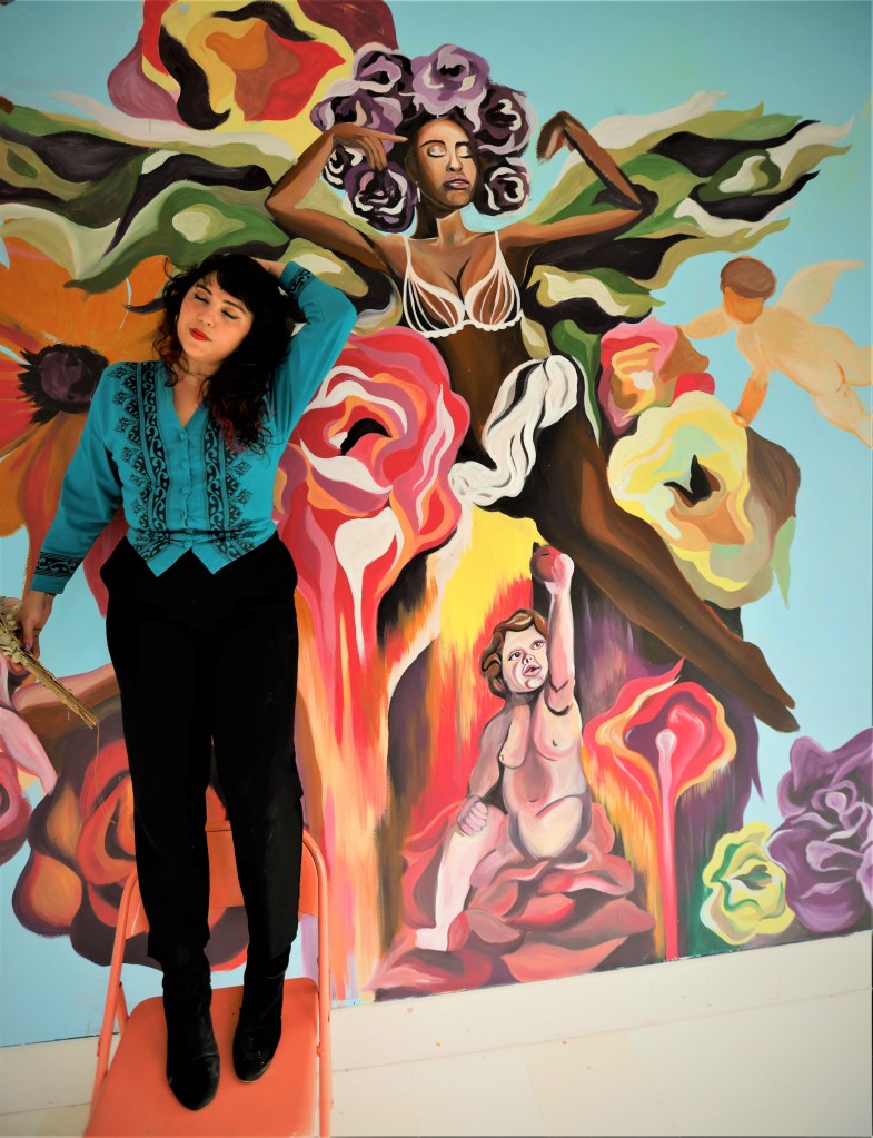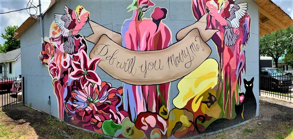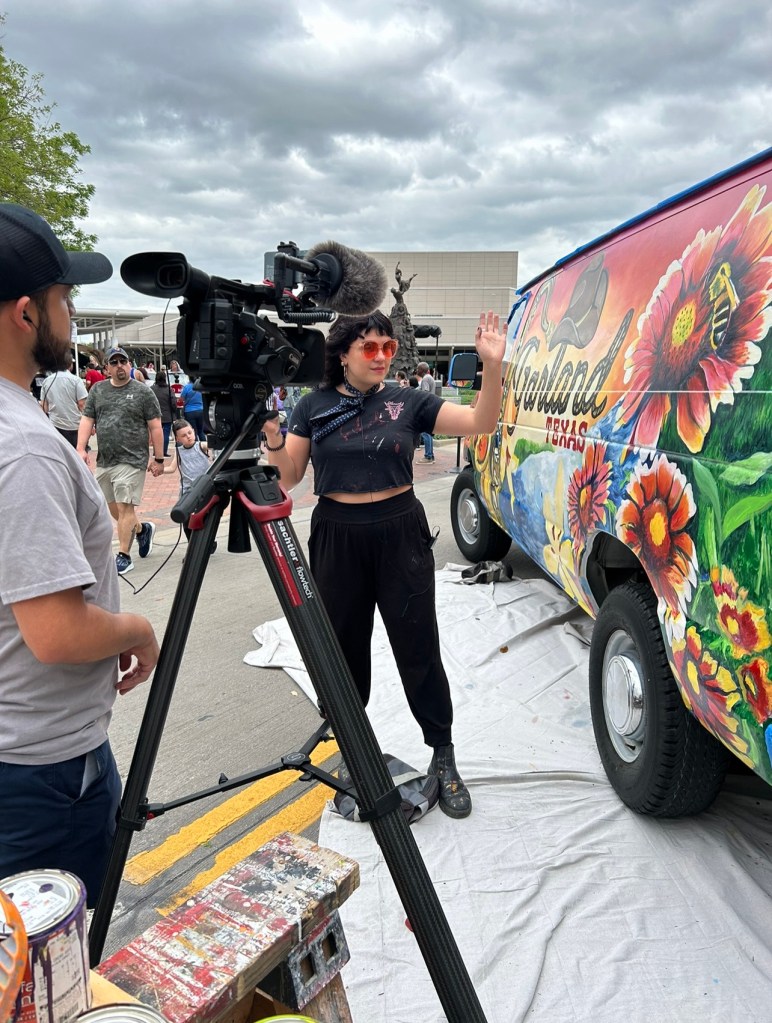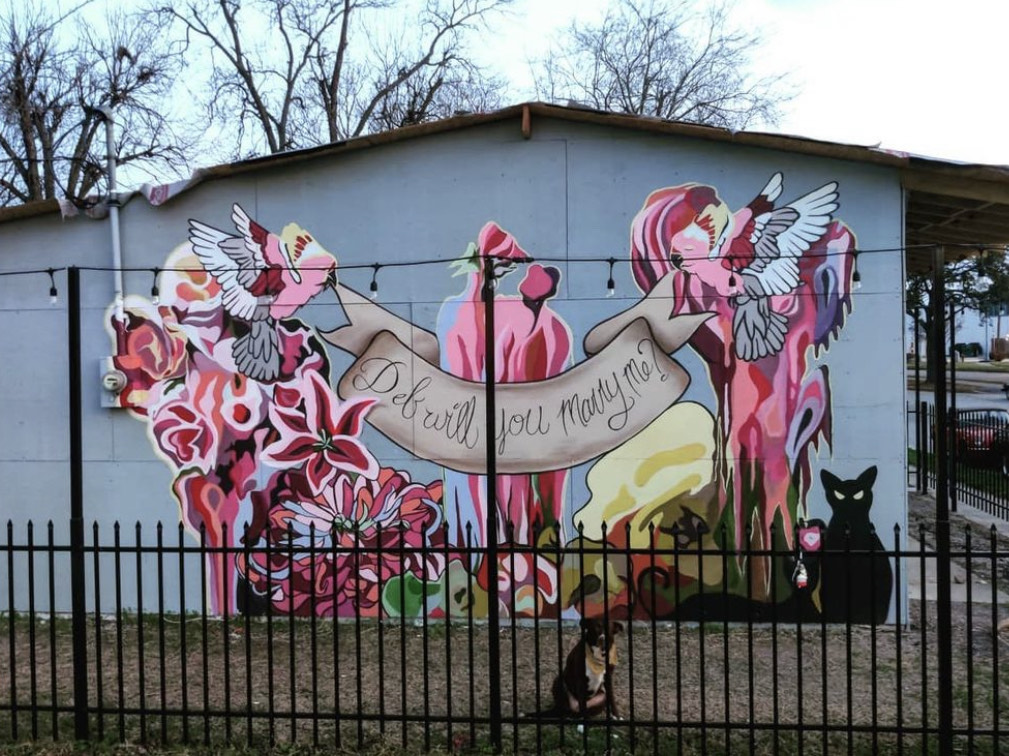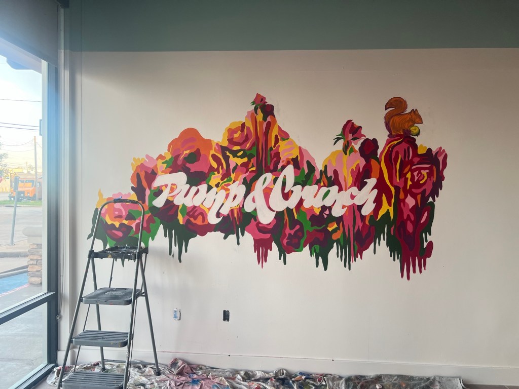 Floral Drip Mural for Black Page BreweryCo-Op Apartments consisting of 6 mid-century modern murals ‘Marry Me?’ Mural 2021 25 ‘ x 10’ ft., latex on wood“Marry Me?” Mural 25′ x 8′ ft., latex on wood“Marry Me?” Mural 25′ x 8′ ft., latex on woodSenate Avenue Brewery Mural, 10′ x 10′ feet, latex on wallClose up of Senate Avenue Brewery Mural, 10′ x 10′ feet, latex on wallClose up of Senate Avenue Brewery Mural 2021“Orange Splash” Mural for The Orange Show/ Art Car Ball 2021 50′ x 20′ ft., latex on brick“Orange Splash” Mural for The Orange Show/ Art Car Ball 2021 50′ x 20′ ft., latex on brickBcycle Mural in honor of Hispanic Heritage Month. August 2022‘Repsychedelic’ Art Car Gala Photo booth Mural. 2022Painted Vintage Chevy for Co-Op Apartment Complex in the Galleria. 2022Assisted GONZO in painting FIFA Mural for Hobby Airport 2021“Rodeo Carousel” Mural Soccer Ball in Hobby Airport Baggage Claim 2021“Elevate” The Flat Houston 2021, Spray paint on BrickPainted for the 2020 Election at local bike shop, EaDo Bike Co 20′ x 20′ ft., completed in Oct 2020 Painted for the 2020 Election at local bike shop, EaDo Bike Co 20′ x 20′ ft., completed in Oct 2020 Residency Mural “Modern Fresco” for Pop Up Event Collect it for the Culture IIII at vacant Forever 21 Building in Downtown Houston, 30′ x 10 ft. Latex on WallResidency Mural “Modern Fresco,” for Pop Up Event Collect it for the Culture IIII at vacant Forever 21 Building in Downtown Houston, 30′ x 10 ft. Latex on Wall‘Locally Grown’ Mural for Little Kitchen HTX, 30′ x 10′ ft. Latex on Wall“Fuego” located at Henderson Heights on Washington Street. 30′ x 15′ ft latex on wood paneling. Posing Mural for Truck Yard Houston 8′ x 8′ ft. Latex on Brick“Breakfast Hawks” Mural, Ode to the 80’s and Edward Hopper for Hungry Like the Wolf 2020-2021, 30′ x 15′ ft. Latex on WallABC News Feature: “Breakfast Hawks” Mural, Ode to the 80’s and Edward Hopper for Hungry Like the Wolf Houston, 2020-2021, 30′ x 15′ ft. Latex on Wall‘United We Demand,’ Mural for Grand Prize 2020 12′ x 6′ ft., Latex on WoodMini Signage Mural for Concert Pub North 2021 10′ x 5′ ft., Acrylic on ChalkboardMini Signage Mural for March for Our Lives Houston 2021Featured in 2/1 bathroom for client in the Heights completed in 2018