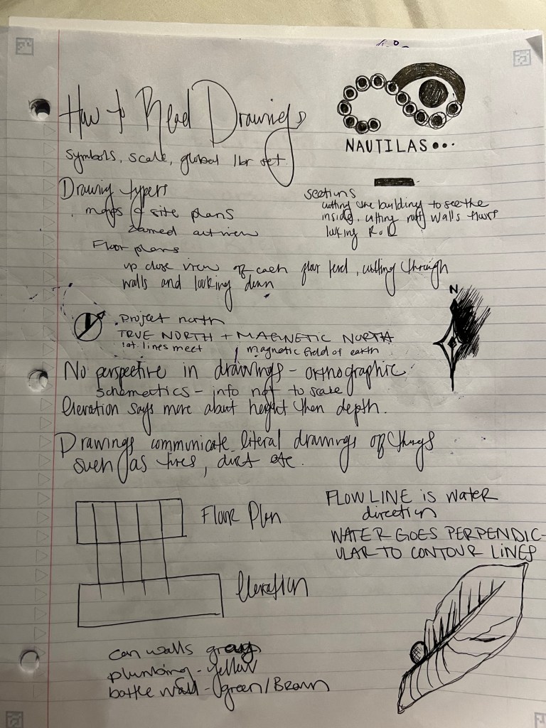 There are many different drawing types: Maps & Site Plans, Sections, Floor Plans etc. There are no perspective in drawings, they are orthographic. A schematic is info not to scale. Elevation says more about height than depth (duh.) Drawings communicate the literal items such as tires, dirt etc.
